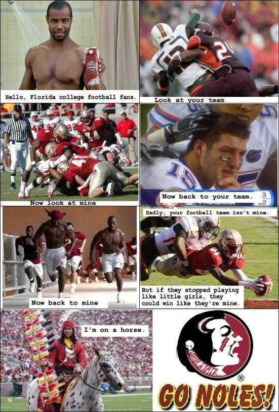 This entry was posted on February 7, 2012 and tagged Football. Bookmark the permalink. Leave a comment This is hilarious to me and I’m not even a Florida State fan (I’m just a fan of Old Spice). sportsaccordingtoagirl: LoL! This is hilarious. Share this: Click to share on X (Opens in new window) X Click to share on Facebook (Opens in new window) Facebook Like Loading... Related